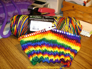 Once I get the 2nd hat knit from this skein, I will have made 8 hats to mail off to my friend Cindy for her project. I think I had 5 or 6 on a previous mailing. The box I have ready is just about full. I know she works on this year round. and I'll have to back off a bit. Once I get out of the not wanting to sew funk, I'm guessing. I have another skein in variegated greens to play with but I have procedures coming up next month that will mean a far amount of doctor's office visits and followup. Tell you more about that later.