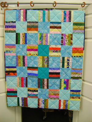 The binding has been put on the last one I did----the big one that has 6 sections of what looks like jelly roll 1600's. Today I had intended to glue down the binding in the back and attempt to machine stitch the binding. That is not apt to happen with my going off on a tangent, LOL.